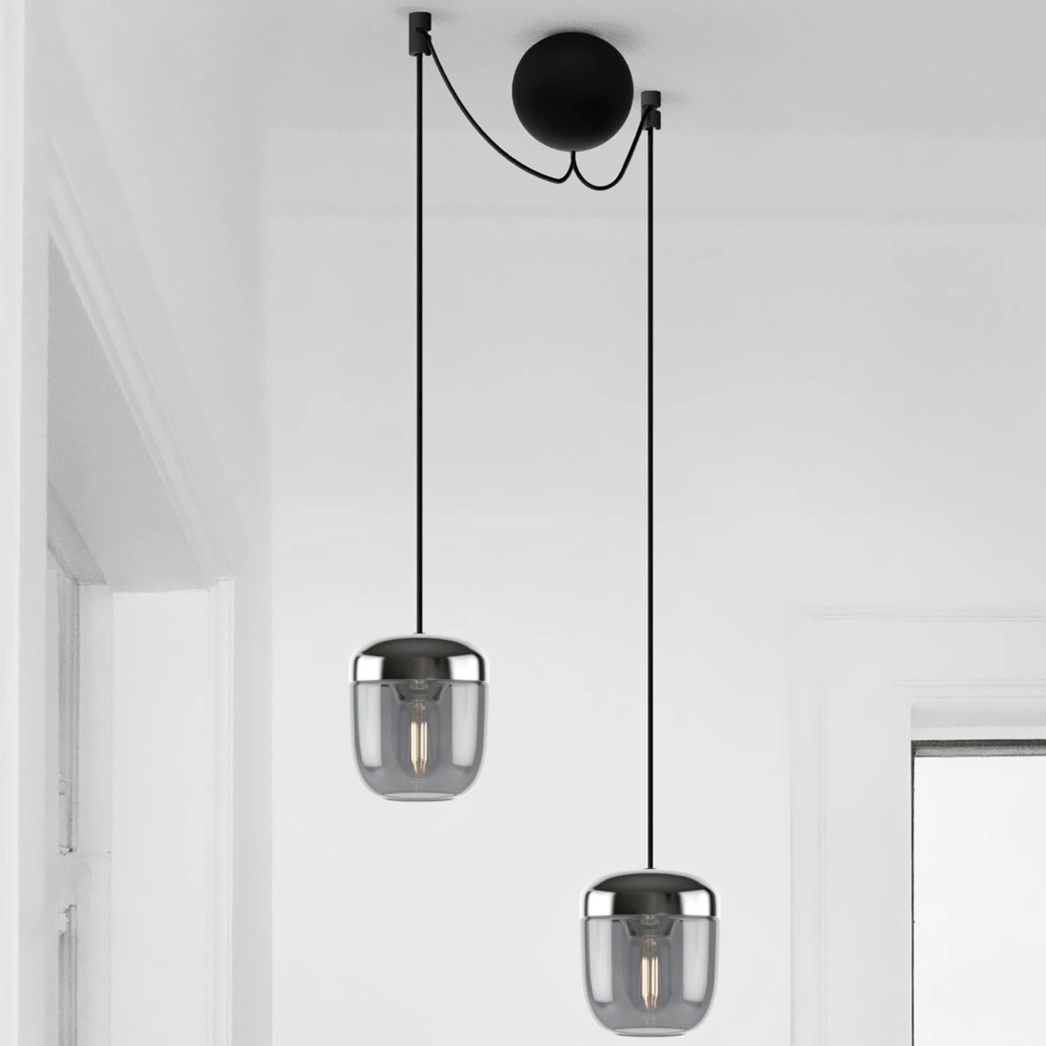 Hängeleuchte Acorn mit zwei Glasschirmen in metallisch-grauer Farbgebung