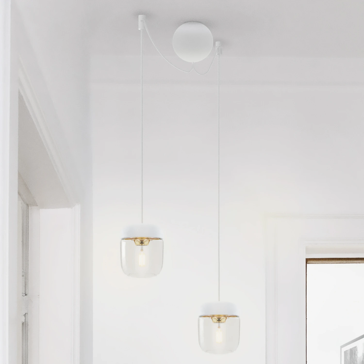 Vervollständigt wird die Hängelampe Acorn mit der zweiflammigen Aufhängung Cannonball Cluster, die von Søren Ravn Christensen kreiert wurde. Sie ist mit einer zeitlos gestalteten Abdeckung ausgestattet, die zum einen die Verkabelung beherbergt und zum anderen die Kabelaufhängung auf eine einzigartige Weise präsentiert. Die Schirme lassen sich auf gleicher Höhe oder unterschiedlich hoch anbringen, was einen kreativen Spielraum ermöglicht.