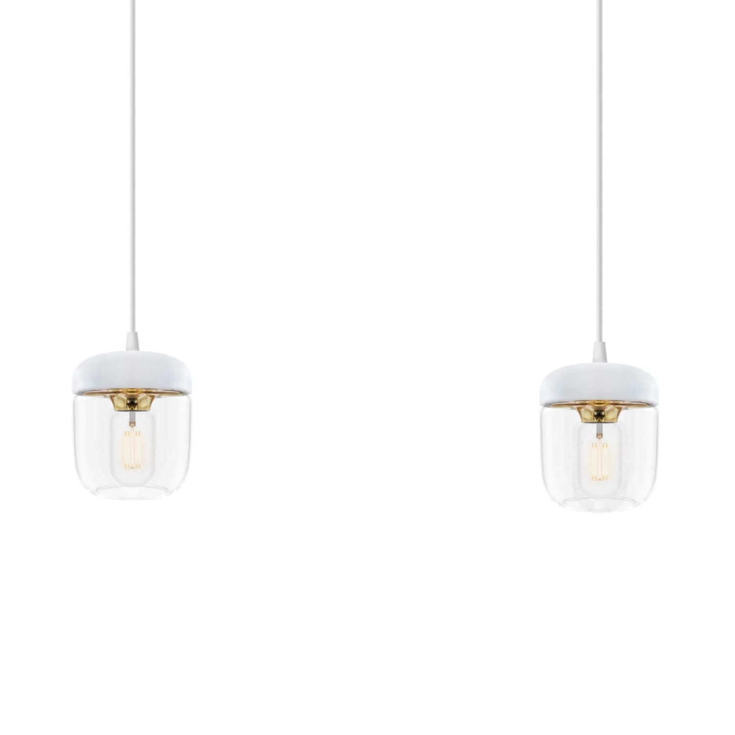 Attraktiv designte Hängelampe Acorn: weiß und messing poliert