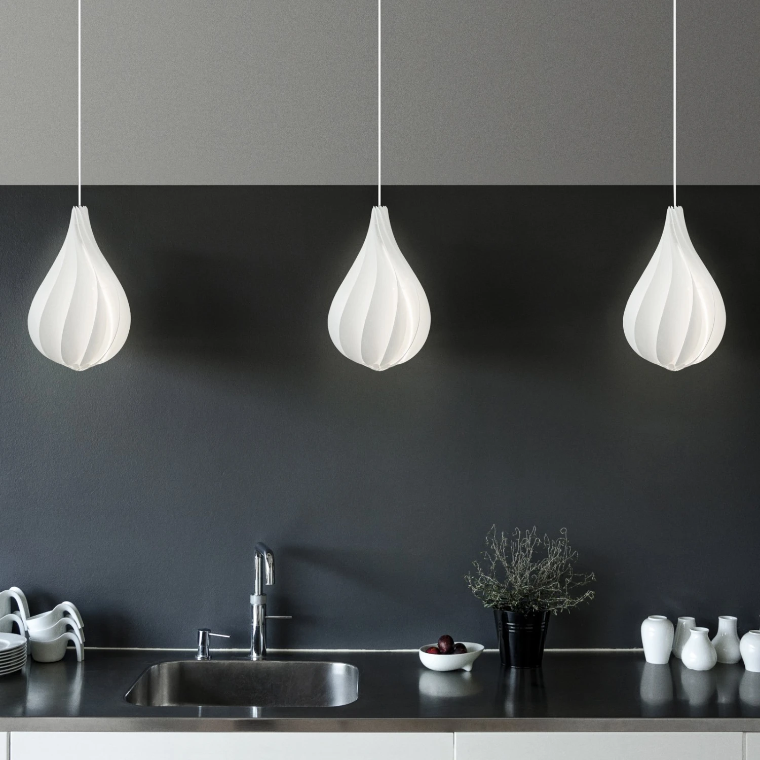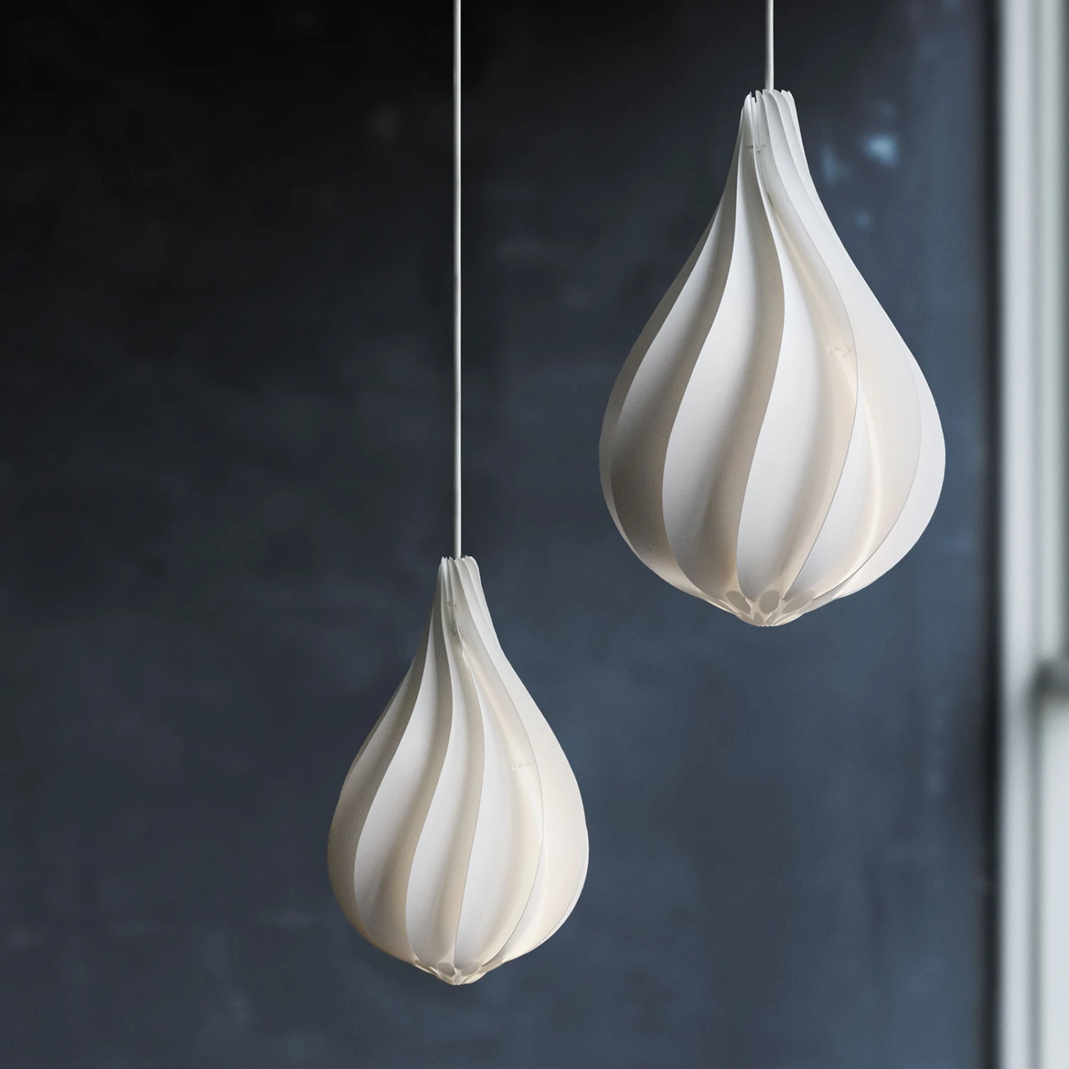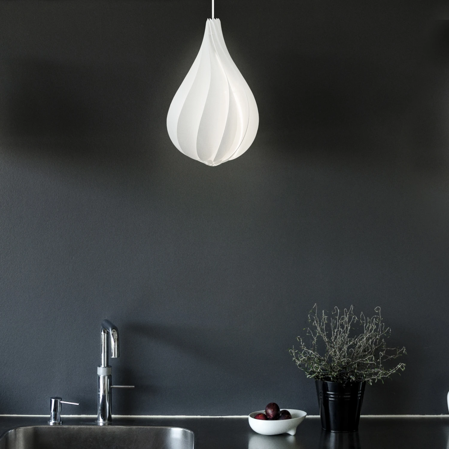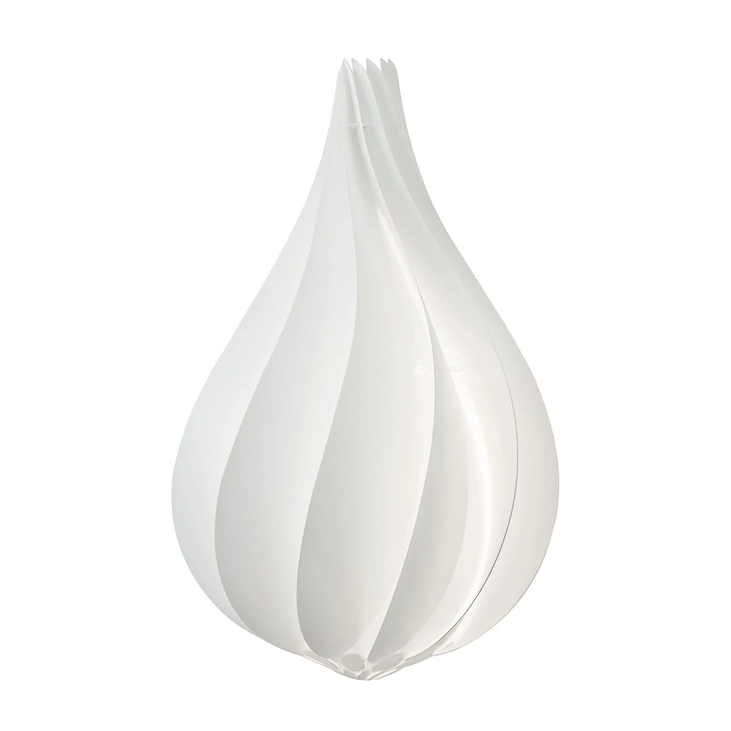 Die Hängeleuchte Alva gleicht einer verschlossenen Blüte, die sich sanft nach oben verjüngt. Auf der Oberfläche zeichnen sich fließende, geschwungene Linien ab, die durch die einzelnen, unzerbrechlichen Bestandteile entstehen. Sie sorgen dafür, dass die Leuchte lebendig und aufregend erscheint. Durch die weiße Färbung der Einzelteile und die geschlossene Form wird eine blendfreie Lichtverteilung im ganzen Raum erzeugt. Der Designer Lorenzo Radaelli vergleicht die Leuchte mit der schönen Form der Edison-Glühbirne. Er spricht von einem verführerischen, aber schlichten Design. Durch die reine Form und das ansprechende Design eignet sie sich für jeden modernen Wohnraum und taucht diesen in behagliches Licht.