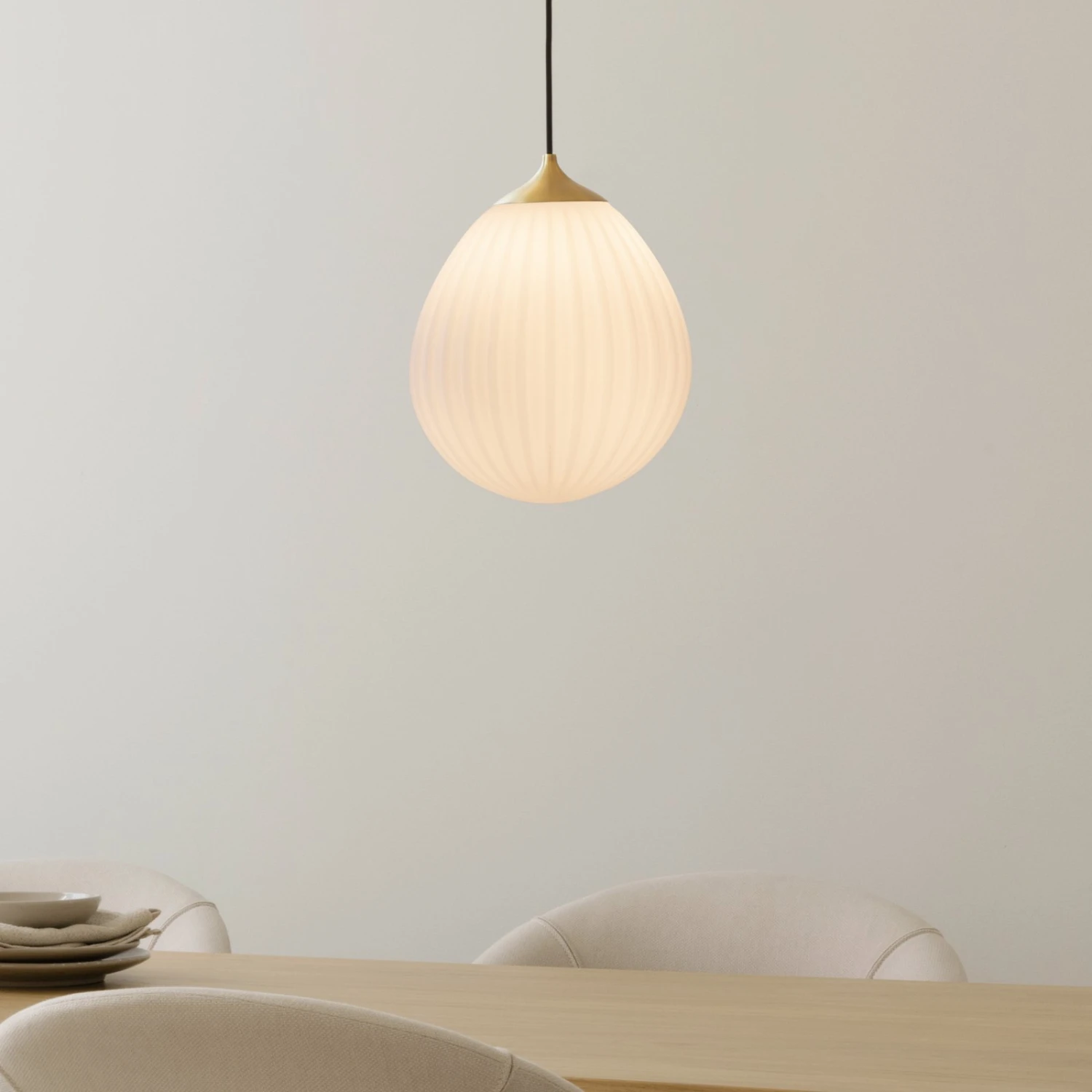 Besonderes Merkmal der Hängeleuchte Around The World ist ihr Schirm aus opalweißem, mundgeblasenem Glas, der mit einer vertikalen Linienstruktur gearbeitet wurde. Inspiriert vom Universum des berühmten Autors Jules Verne, schuf der italienische Designer Luigi Vittorio Cittadini die Schirme der Leuchtenserie Around The World, die in ihrer Form an einen Heißluftballon erinnern. Zeitlos und elegant in ihrem Design, lässt sich die Hängeleuchte Around The World in die unterschiedlichsten Einrichtungen integrieren und beispielsweise zur Beleuchtung des Esstischs montieren, ob einzeln oder im Cluster oder in einer Reihe zu mehreren Exemplaren.