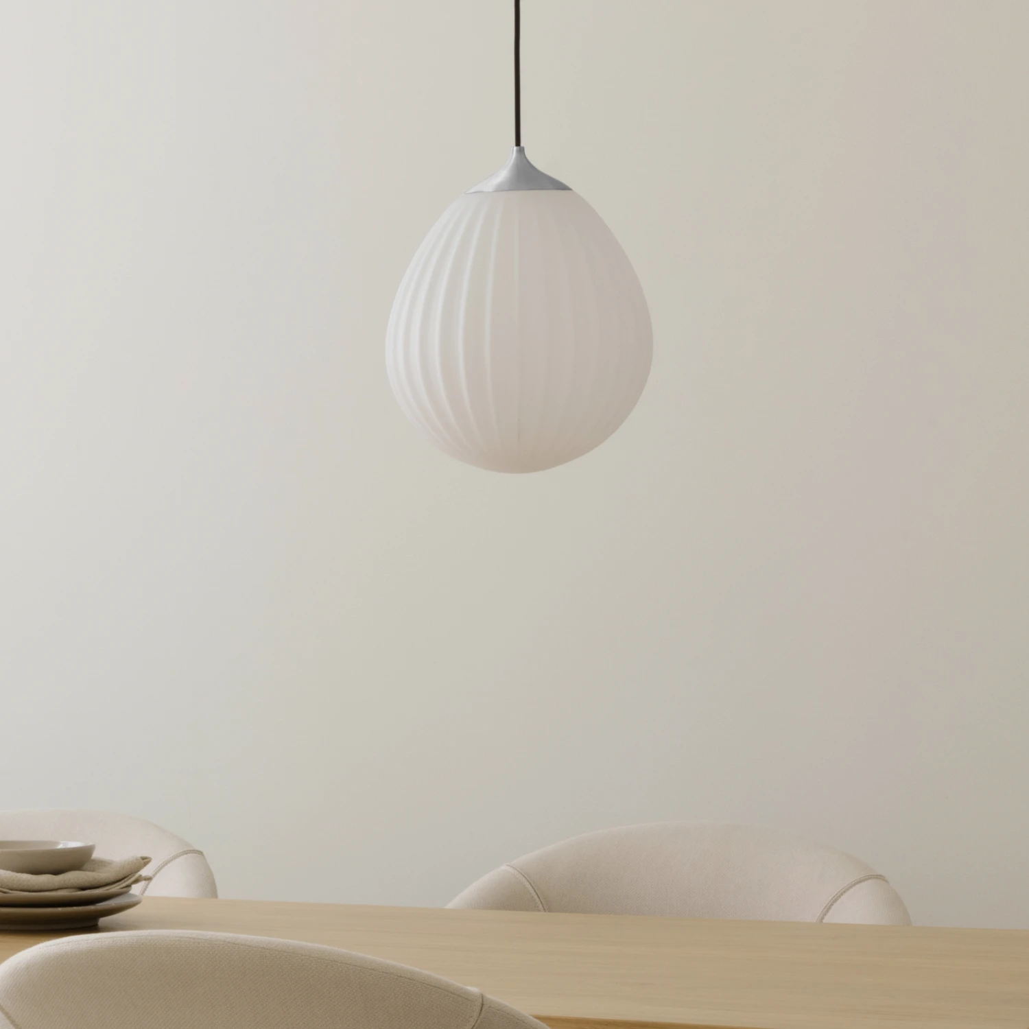 Besonderes Merkmal der Hängeleuchte Around The World ist ihr Schirm aus opalweißem, mundgeblasenem Glas, der mit einer vertikalen Linienstruktur gearbeitet wurde. Inspiriert vom Universum des berühmten Autors Jules Verne, schuf der italienische Designer Luigi Vittorio Cittadini die Schirme der Leuchtenserie Around The World, die in ihrer Form an einen Heißluftballon erinnern. Zeitlos und elegant in ihrem Design, lässt sich die Hängeleuchte Around The World in die unterschiedlichsten Einrichtungen integrieren und beispielsweise zur Beleuchtung des Esstischs montieren, ob einzeln oder im Cluster oder in einer Reihe zu mehreren Exemplaren.