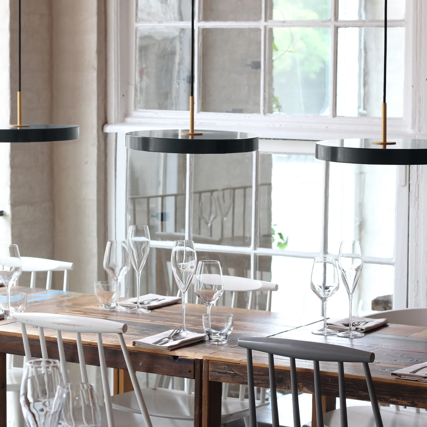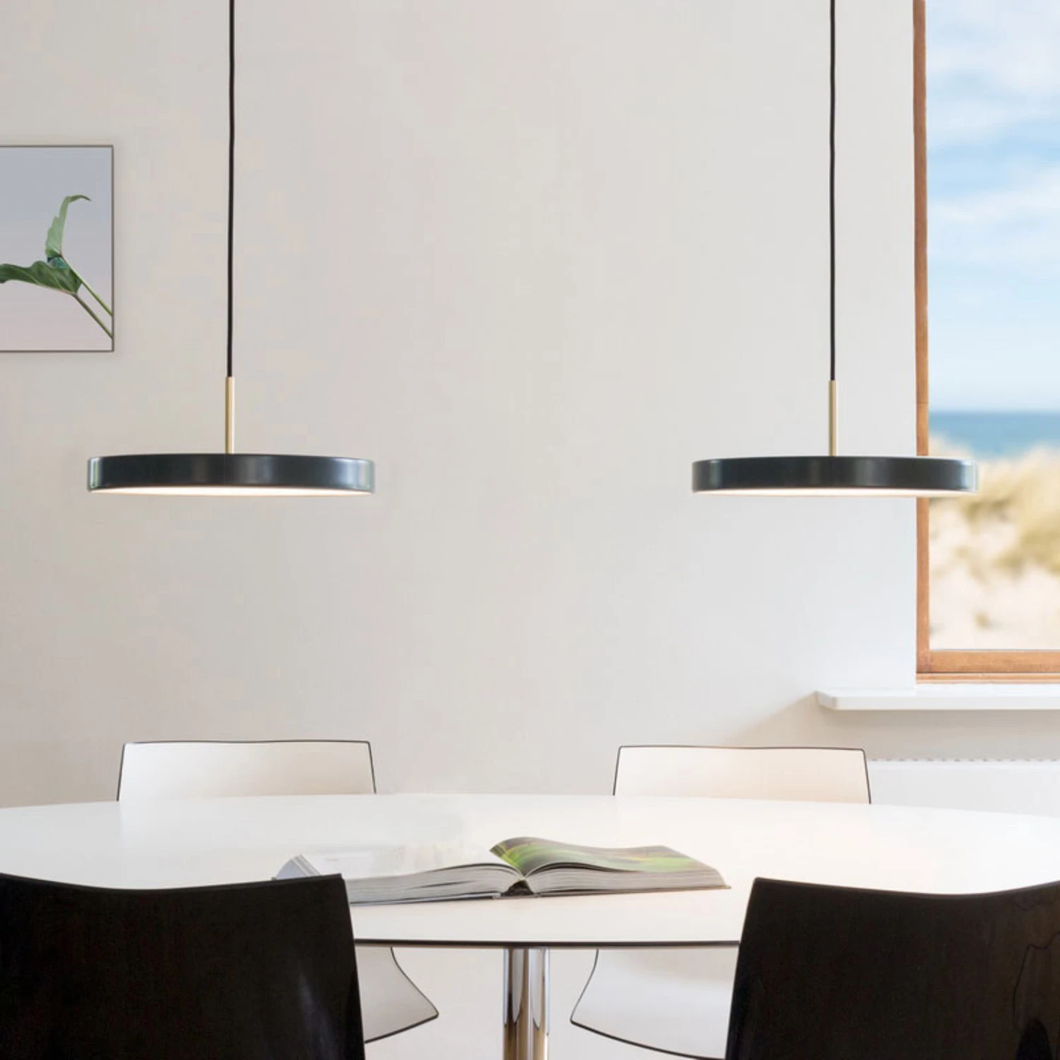 Die LED-Pendelleuchte Asteria mini zeichnet sich durch ihre elegante, klare Form und das schlanke Auftreten aus. Im Gegensatz dazu verfügt sie über ein leuchtstarkes, integriertes LED-Panel, welches die Oberfläche unter sich voll ausleuchtet. Das warmweiße Licht ist angenehm für die Augen und eignet sich hervorragend als Tischbeleuchtung.