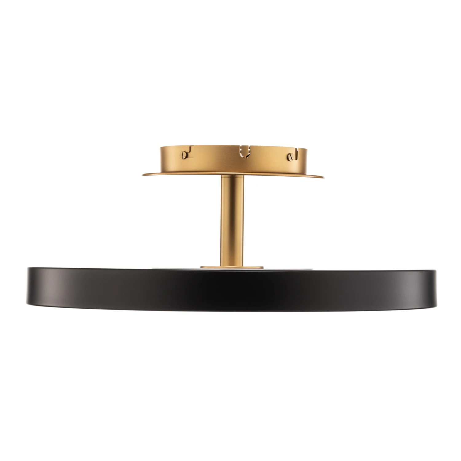 Der scheibenförmige Korpus der Deckenleuchte Asteria Up Medium von UMAGE bietet sowohl lichtstarke, nach unten gerichtete Beleuchtung wie auch atmosphärisches Licht, das nach oben an die Decke abgegeben wird, was durch den Abstand, den die Leuchte von der Decke hat, richtig zur Geltung kommen kann.