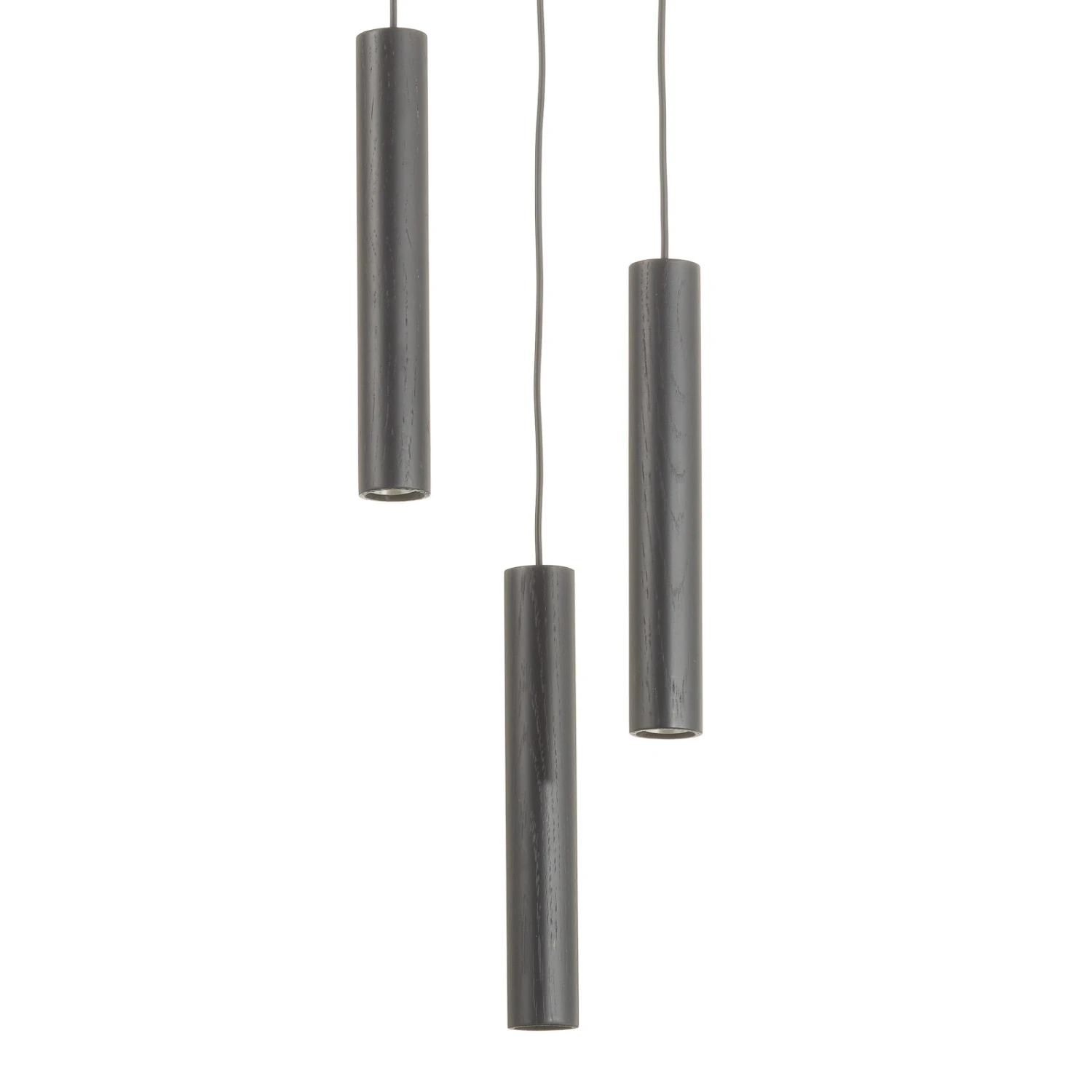 LED-Hängeleuchte Chimes Cluster 3 mit Zylinderschirmen aus Holz