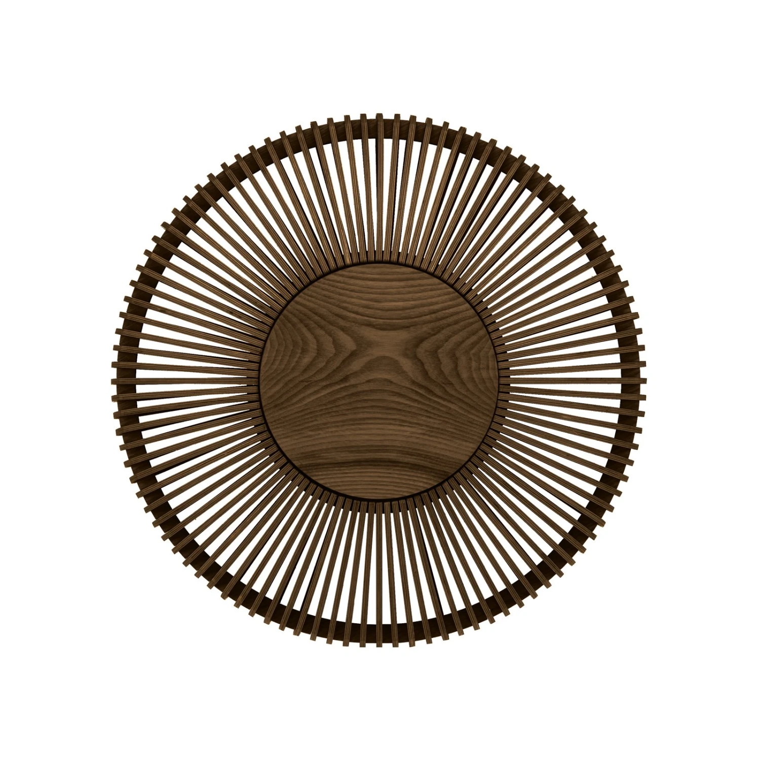 Aus vielen lasergeschnittenen Holzlamellen besteht der Schirm der Wandleuchte Clava. Das Licht kommt aus dem Inneren und scheint das Gerüst aus Eichenholz an. So generiert die Wandlampe einen schönen, strahlenden Schein, der gut mit der Sonne verglichen werden kann, aber völlig blendfrei die Wand anstrahlt.