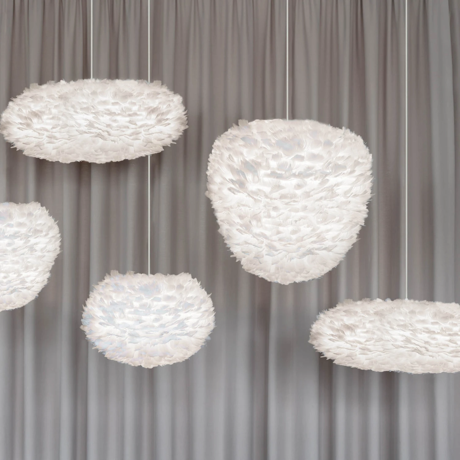 Die aus echten Gänsefedern bestehende Pendelleuchte Eos Esther erhielt ihren Namen aus der griechischen Mythologie. Eos ist die Göttin der Morgendämmerung und so erzeugte der dänische Designer Søren Ravn Christensen bei seinem Entwurf die Verbindung zu den Wolken, die am Himmel schweben – genauso wirkt die Leuchte Eos Esther auf den Betrachter. Eine Wolke, die Leichtigkeit, Reinheit und Zuversicht ausstrahlt. Eos Esther sorgt mit einem mitschwingenden Gefühl der Geborgenheit dafür, dass man sich wohl fühlt und der Raum freundlich erhellt wird. Ihre schlanke und elegante Form prädestiniert sie für einen Esszimmertisch, aber auch im Schlafzimmer sorgt sie mit ihrer Ausstrahlung für Wohlfühlmomente. Der Lichtstrahl tritt rundum in blendfreiem Schein durch die Federn hindurch und sorgt somit für ein angenehmes und stimmungsvolles Ambiente.