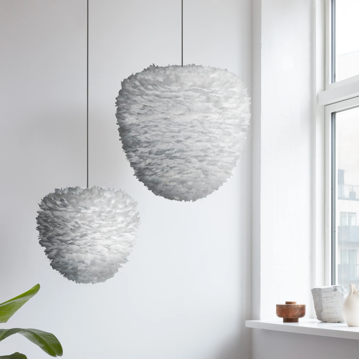 Der extravagante Schirm der Hängeleuchte Eos Evia ist über und über mit Gänsefedern bestückt, die ihm seine ganz spezielle Leichtigkeit verleihen. Einerseits erinnert die Leuchte damit an harmlose Schäfchenwolken am ansonsten blauen Himmel, andererseits ist die Form von Eos Evia eindeutig an die eines Bienenstocks angelehnt. Aber weder die eine noch die andere Assoziation verwundern, denn das dänische Label UMAGE, das diese Leuchten entwirft und herstellt, steht für Designs, die u. a. die skandinavische Verbundenheit zur Natur widerspiegeln.