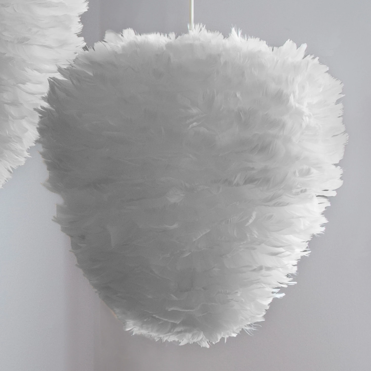 Flauschig-leichte Hängeleuchte Eos Evia mit Gänsefederschirm