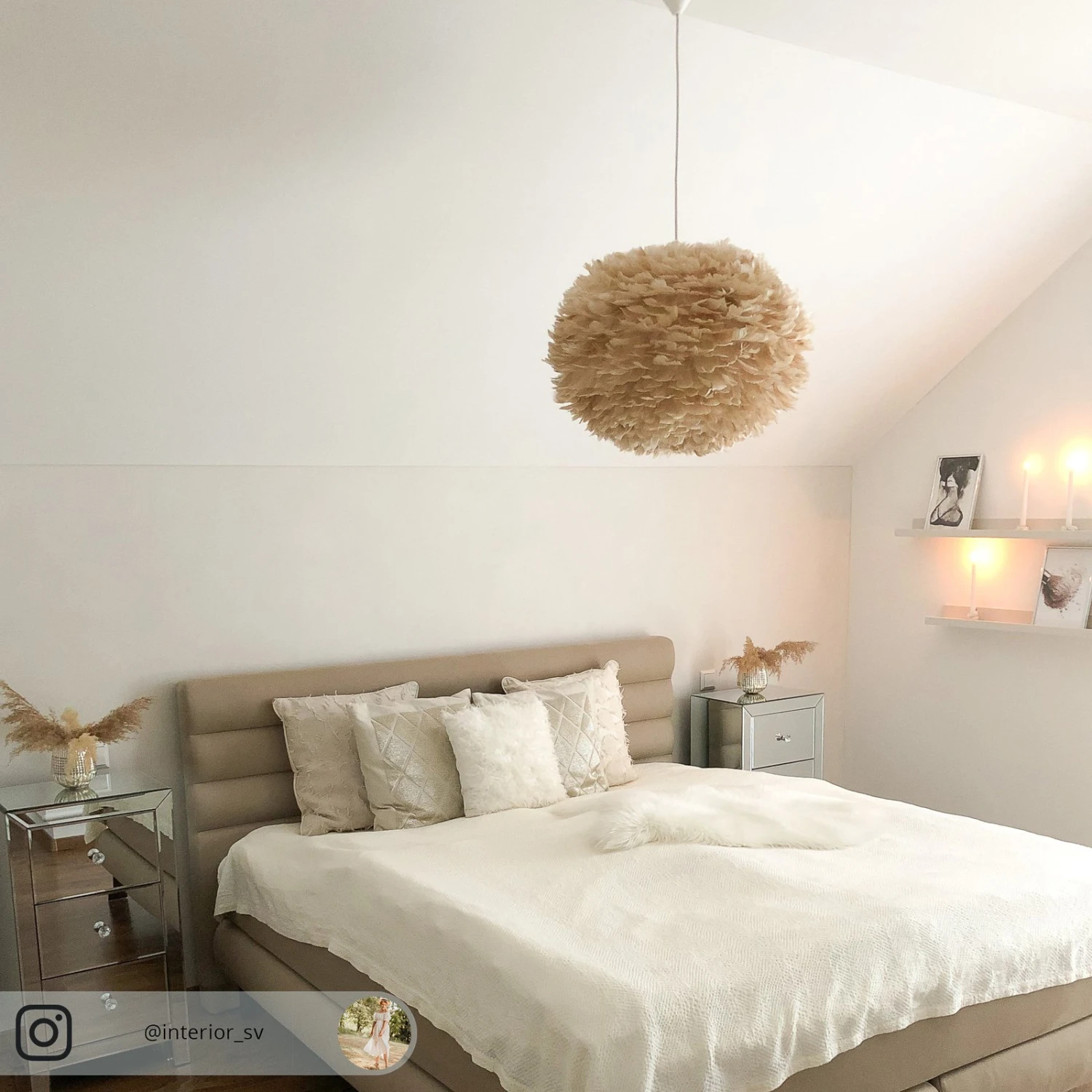 Bezaubernde Pendelleuchte Eos large mit Schirm in Hellbraun