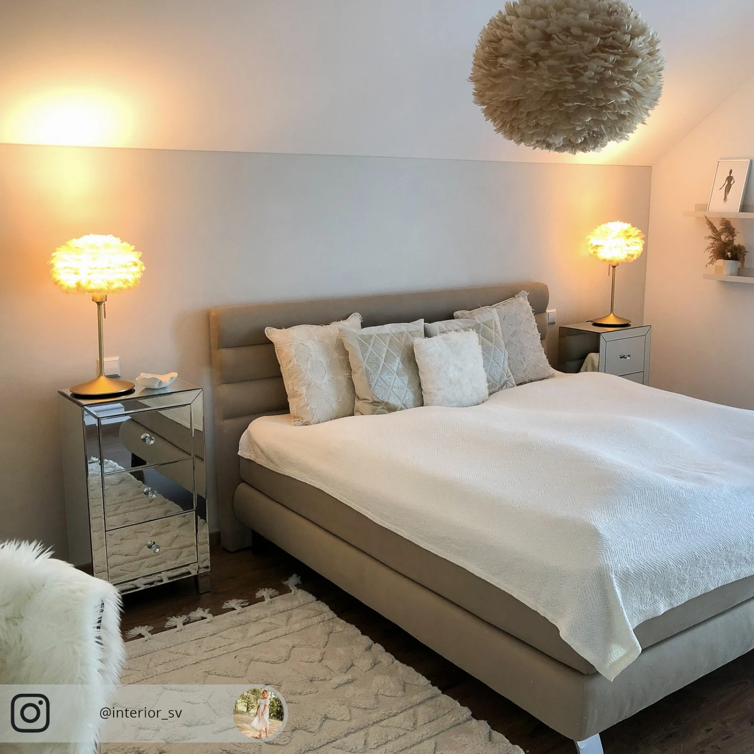 Die Natürlichkeit des Schirmmaterials – der Schirm besteht aus ca. 4.500 echten Gänsefedern auf einer Papiergrundlage – sowie die bezaubernde Lichtstimmung, die dieser Lichtspender aus Designerhand verbreitet, stehen bei der Pendelleuchte Eos large im Vordergrund. Schon der Anblick von Eos large lässt ein Wohlgefühl der Behaglichkeit aufkommen. Sobald das Licht eingeschaltet wird, bereichert die stimmungsvolle Lichtwirkung jeden Raum.