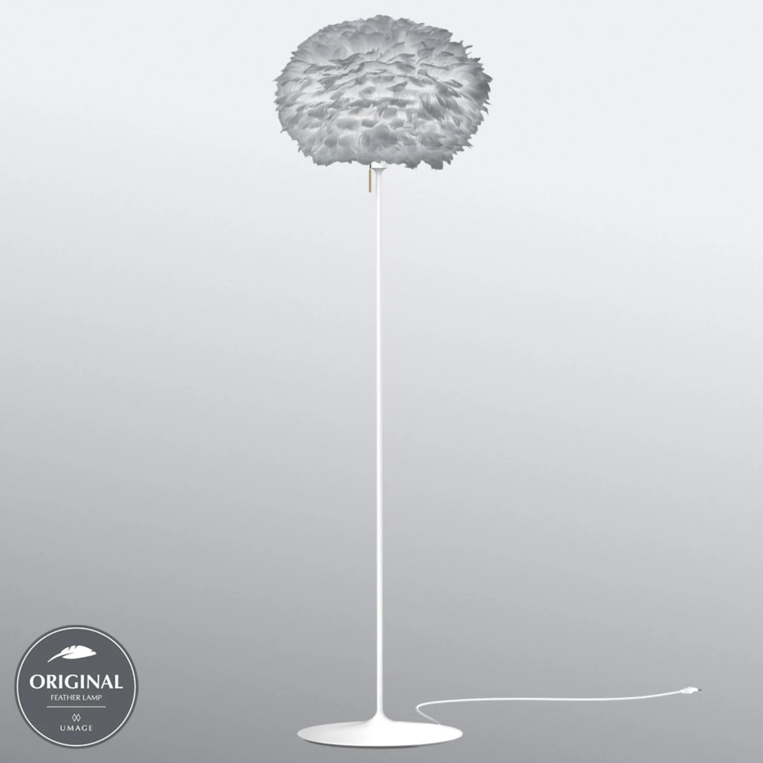 Stehleuchte Eos medium mit hellgrauem Schirm aus Gänsefedern