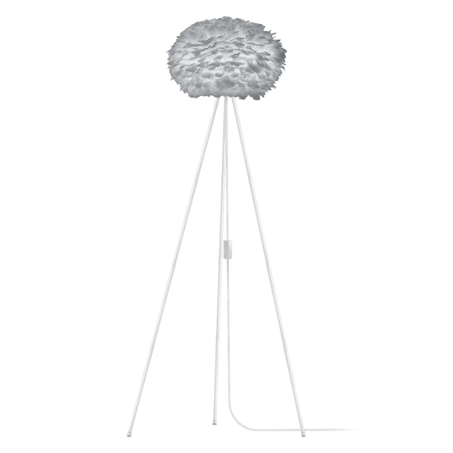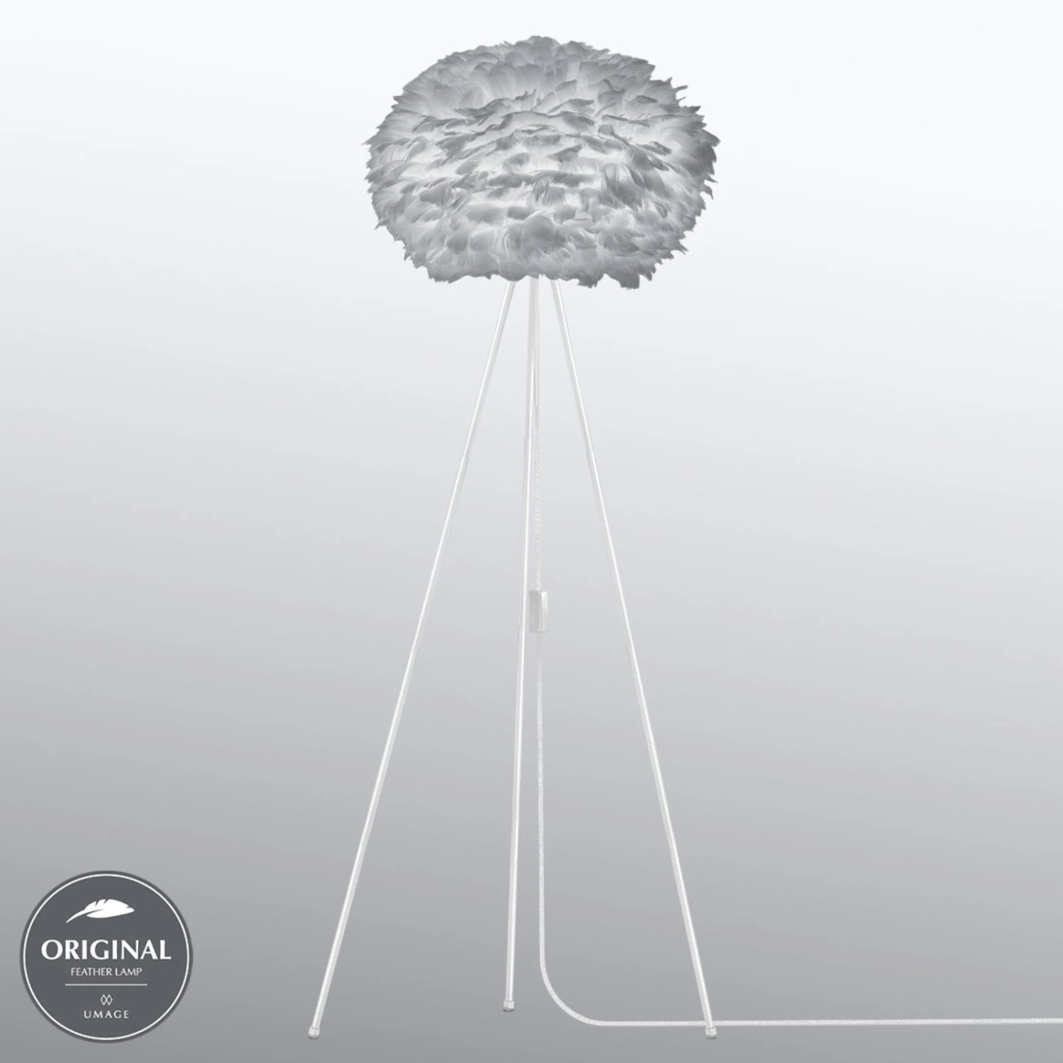 Designer-Stehlampe Eos medium mit Dreibein-Stativ und Schirm aus Gänsefedern