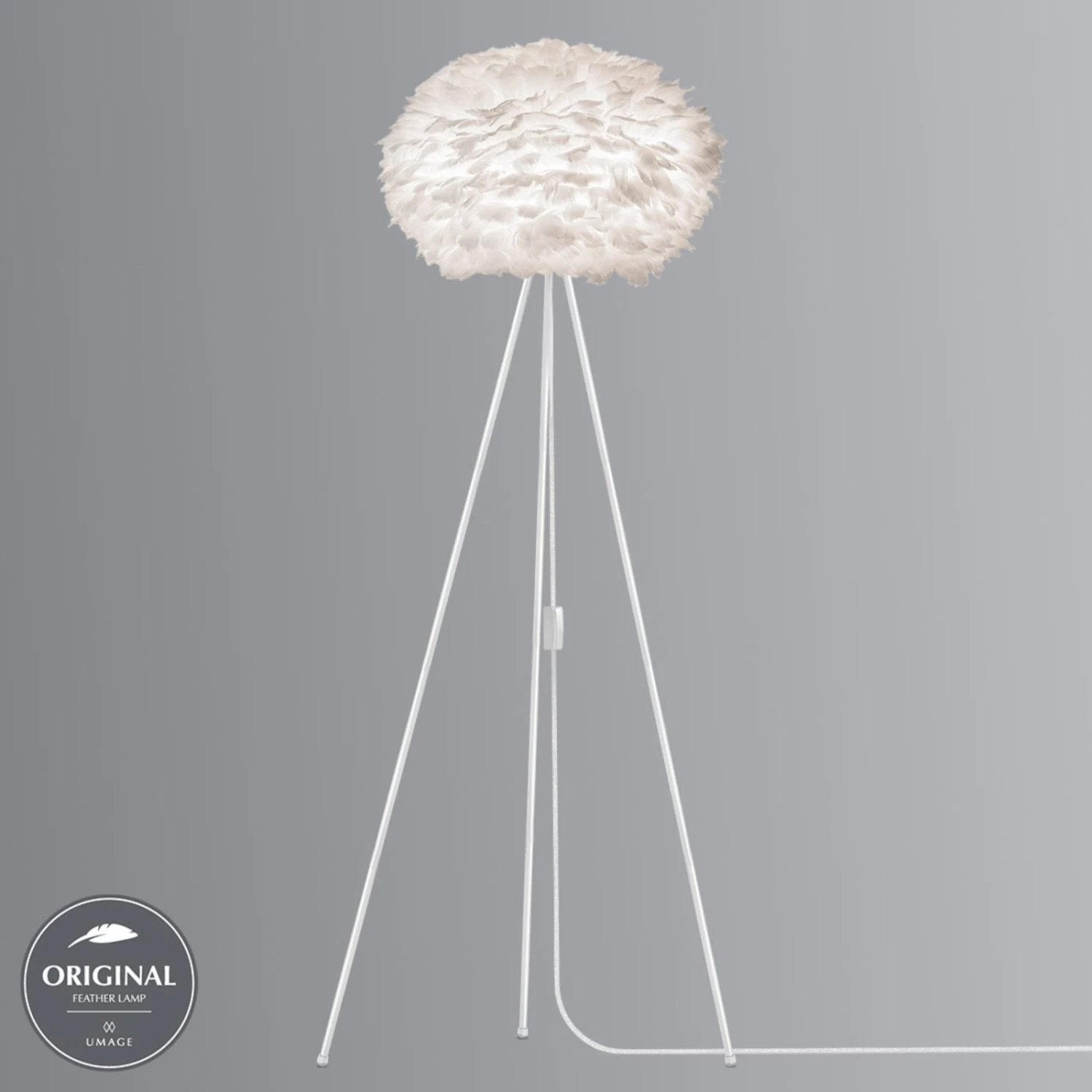 Dreibeinige Designer-Stehleuchte Eos medium mit Gänsefederschirm