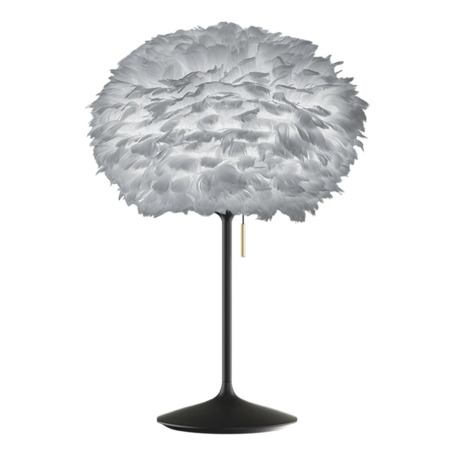 Die eindrucksvolle Tischleuchte Eos Medium zeichnet sich durch ihren runden Schirm aus, der mit circa 1.800 echten Gänsefedern bestückt ist. Durch diese erhält die Leuchte einen weichen, angenehmen Touch und versprüht ein Gefühl der Geborgenheit. Der effektive und helle Blickfang kommt in modern eingerichteten Räumen oder auch solchen in skandinavischem Stil besonders gut zur Geltung, wenn man sie auf einem Hocker platziert.
