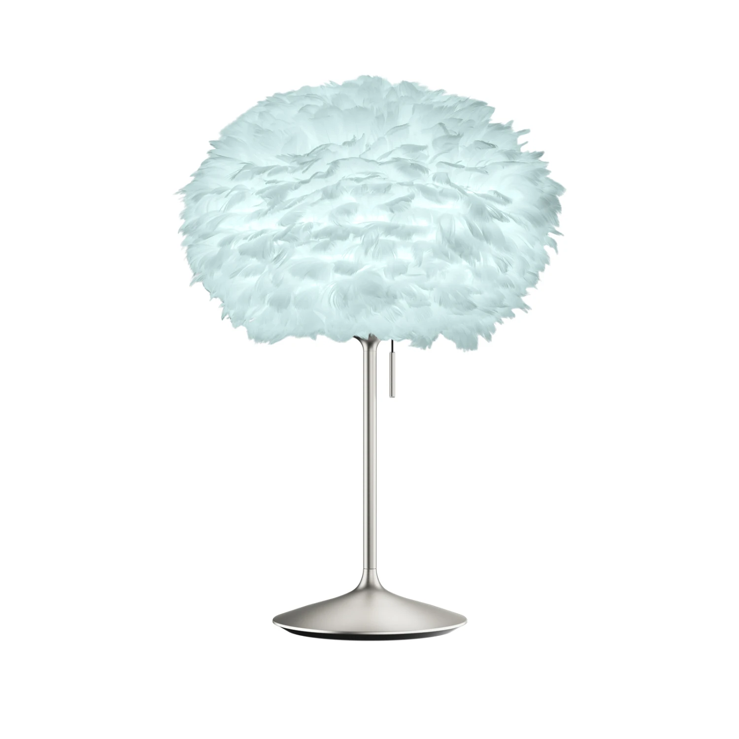 Tischleuchte Eos medium mit einem Schirm aus Federn auf Stahlgestell