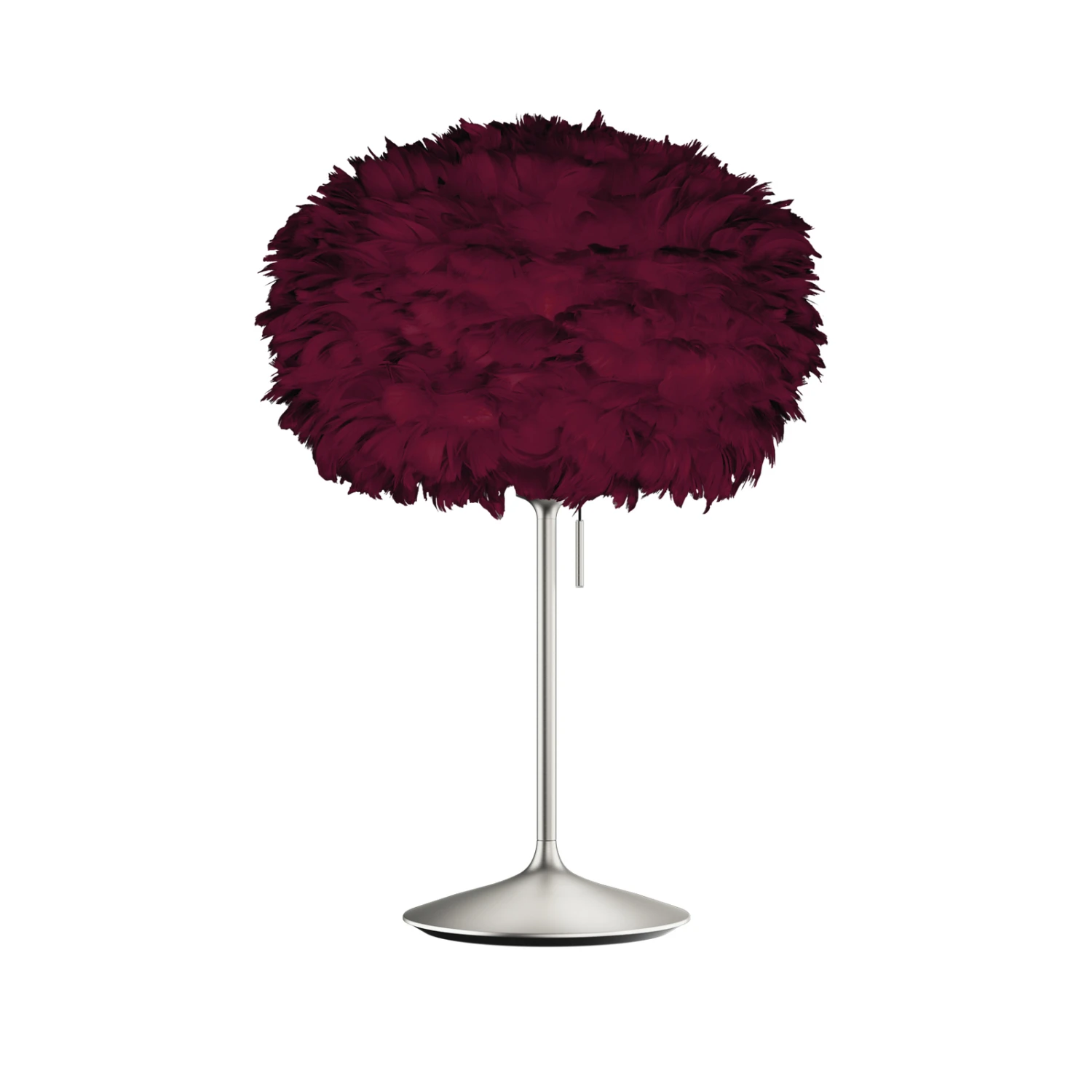 Tischleuchte Eos medium mit einem Schirm aus Federn auf Stahlgestell