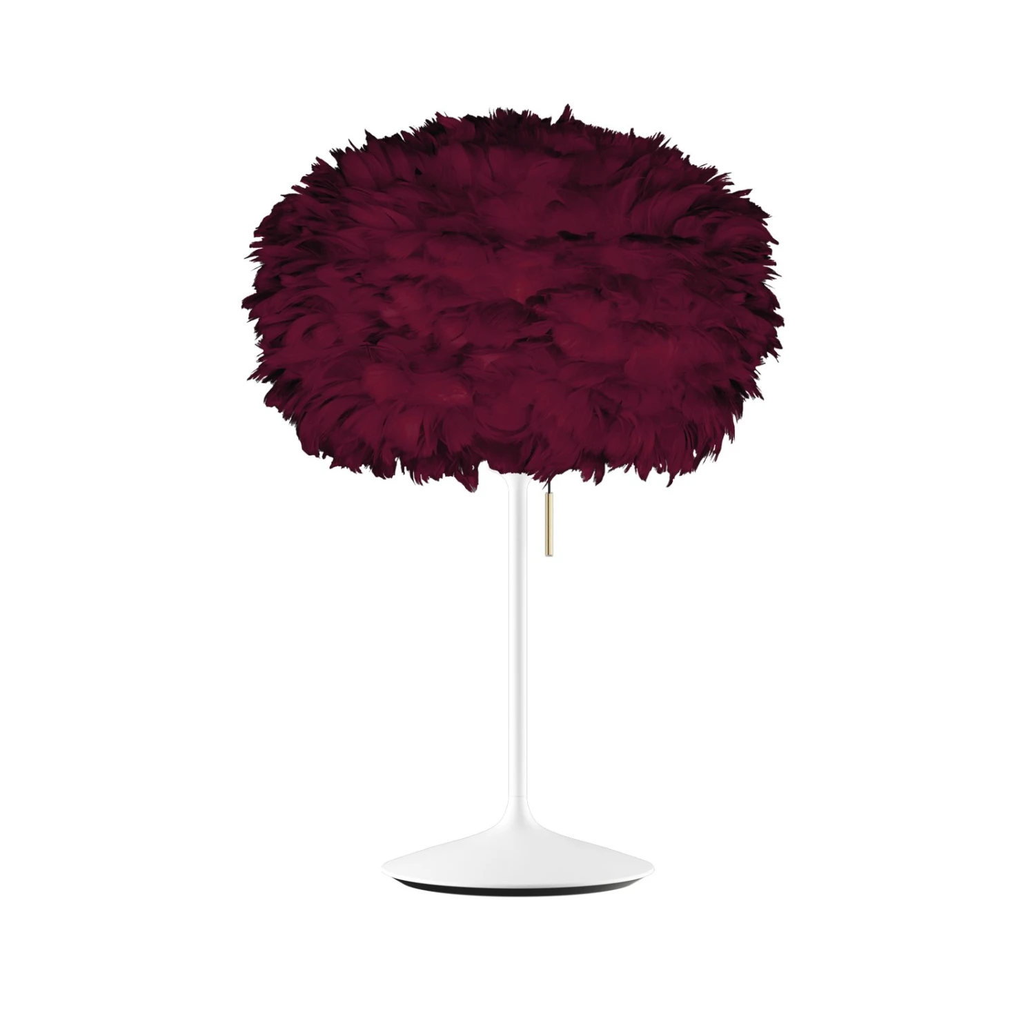 Tischleuchte Eos medium mit weißem Fuß und farbigem Schirm aus Federn