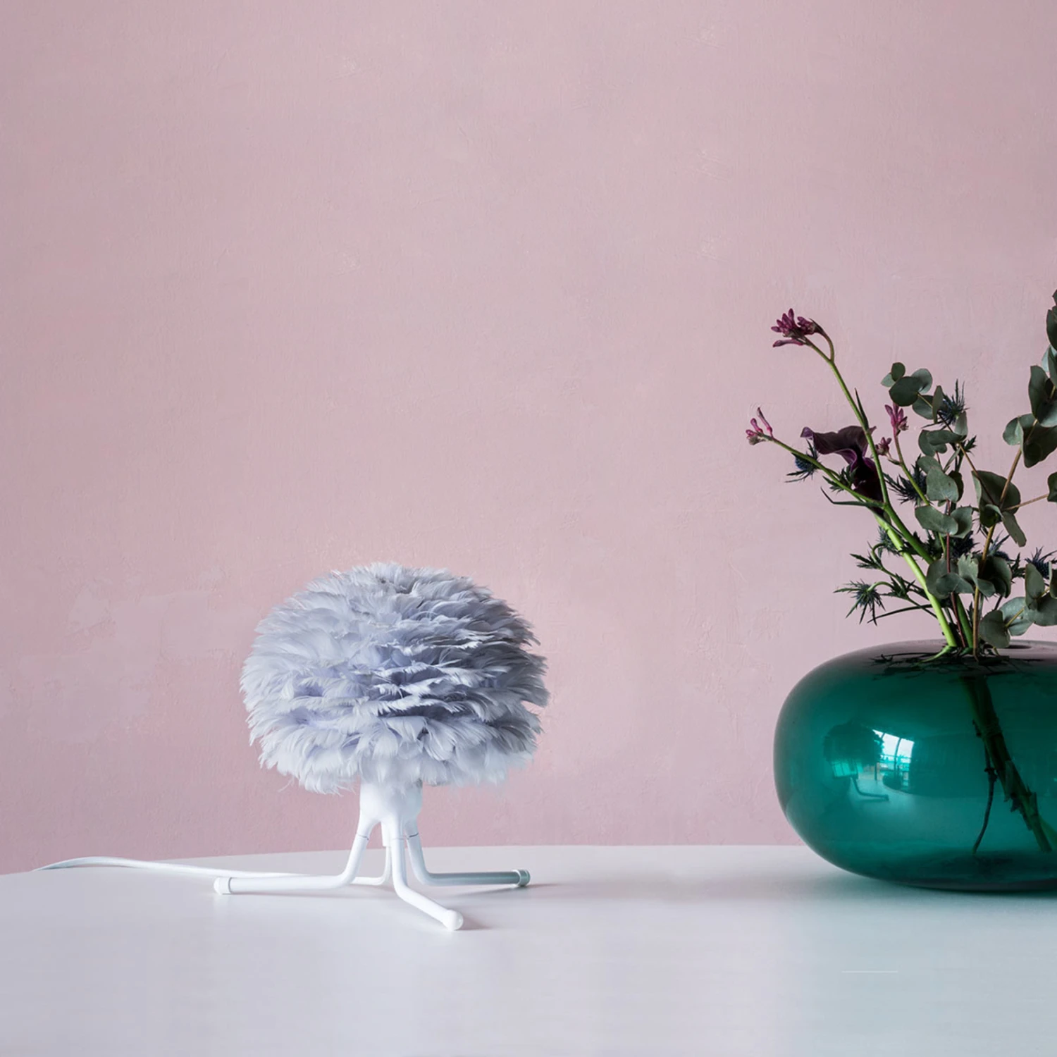 Die moderne Tischleuchte Eos micro stammt aus dem Hause UMAGE by VITA copenhagen und ist ein besonderes Highlight. Der Lampenschirm ist aus natürlichen und echten Gänsefedern gefertigt, die der Leuchte ihre Sanftheit verleihen. Das Licht wird hierdurch ganz soft und zaubert eine angenehme Atmosphäre in jeden Raum, ob nun als zusätzliche Beleuchtung im Wohnzimmer oder als Nachttischleuchte im Schlaf- oder Kinderzimmer genutzt.