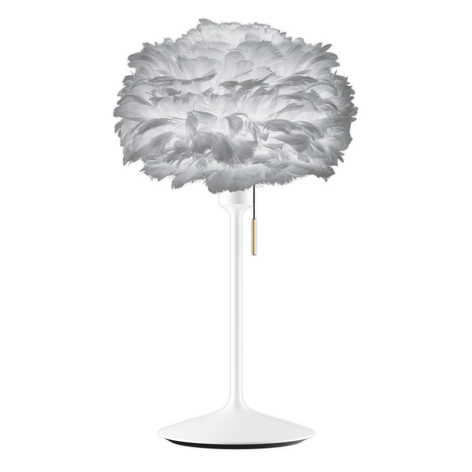 Einen unvergleichlichen Anblick bietet die Tischleuchte Eos mini dank des Schirms aus natürlichem Material. Er besteht aus Gänsefedern, die von Hand auf einem Untergrund aus Pappe aufgebracht wurden. Für die Schirmgestaltung werden keine Federn lebender Tiere verwendet. Der Schirm Eos mini wurde von Søren Ravn Christensen designt, dem Mitbegründer der dänischen Herstellerfirma UMAGE und lässt sich mit verschiedenen Gestellen kombinieren, in diesem Fall wurde ein von Anders Klem gestaltetes Gestell verwendet. Dessen Form wurde unübersehbar dem Fuß einer Champagnerflöte nachempfunden. Es strahlt Leichtigkeit und pure Eleganz aus und ergibt im Zusammenspiel mit dem Schirm Eos mini eine Tischleuchte, die jedem modernen Wohndesign das gewisse Etwas verleiht.