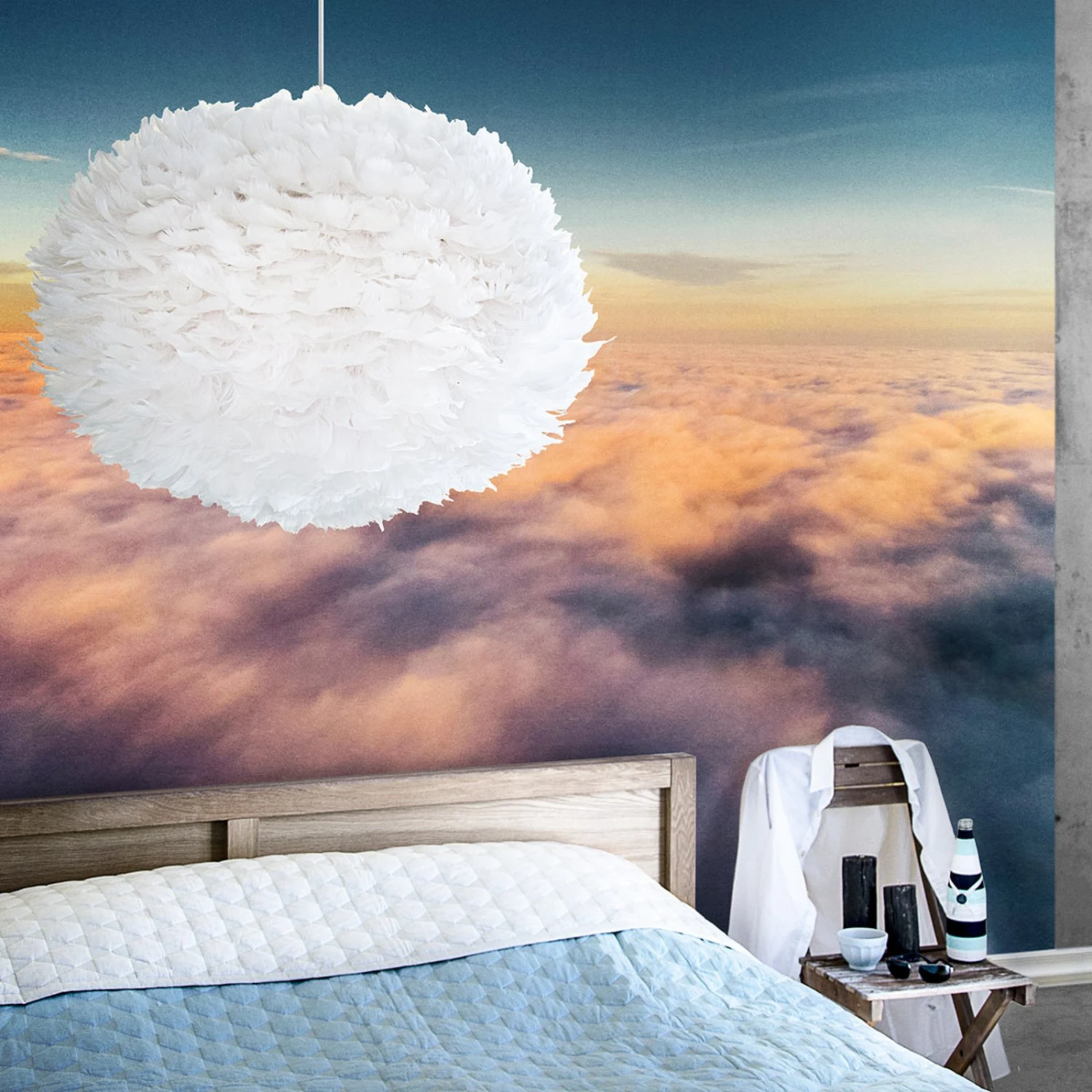Natürlichkeit ist bei der Hängeleuchte Eos X-large Trumpf: Ihr riesiger Schirm besteht aus einer Papierform, auf die insgesamt rund 6.000 Gänsefedern aufgebracht wurden. Der Schirm spendet ein warmes, angenehmes Licht, das in jedem Raum ein stimmungsvolles Ambiente entstehen lässt.
