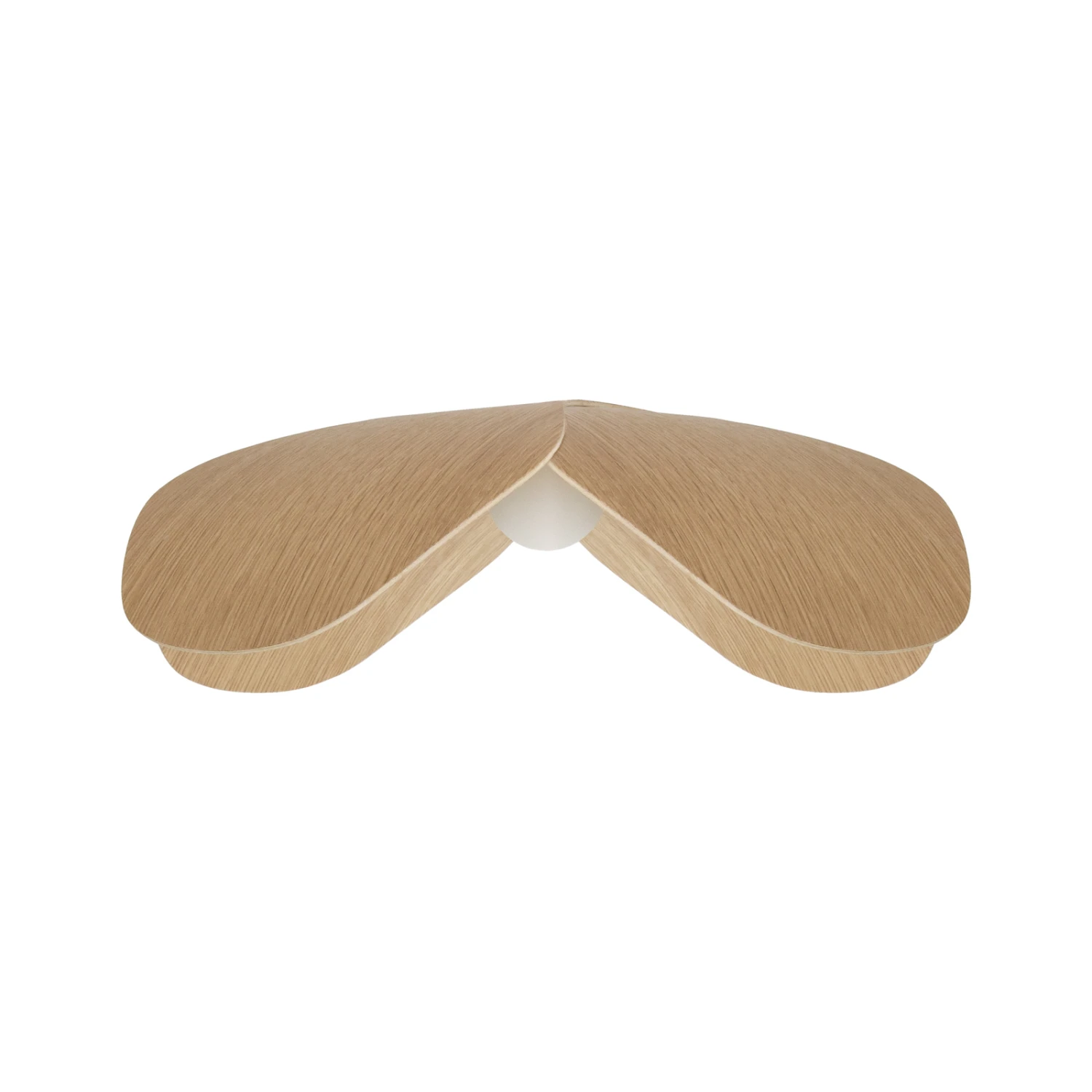 Der Schirm der Leuchte besteht aus Eichenholzfurnier. Dieses bildet die Blütenblätter des Vergissmeinnichts. In der Mitte der „Blüte“ befindet sich ein kugelrunder Diffusor aus Kunststoff, der das Licht blendfrei im Raum verteilt. Die Pendelleuchte kann einzeln oder auch zu mehreren nebeneinander aufgehängt werden, so dass z. B. ein großer Esszimmertisch oder eine Theke ausgeleuchtet werden können.