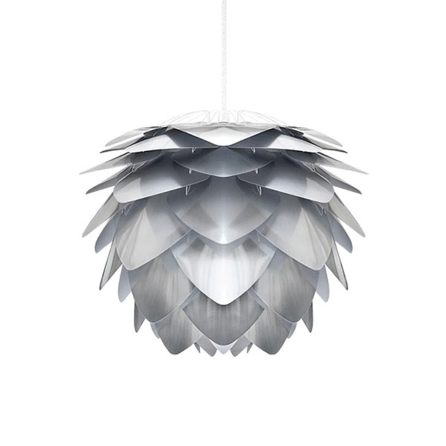 Farblich eher kühl gehalten, wirkt die in gebürstetem Stahl gestaltete Pendellampe Silvia mini rein optisch alles andere als kalt. Dafür zeichnet das ästhetische Design des „Blätterschirms“ verantwortlich. Mit der Vielzahl an dreieckigen Blättern sieht der Schirm von Silvia wie eine exotische Frucht aus, so dass die Pendellampe gar nicht angeschaltet sein muss, um Aufmerksamkeit zu erregen.