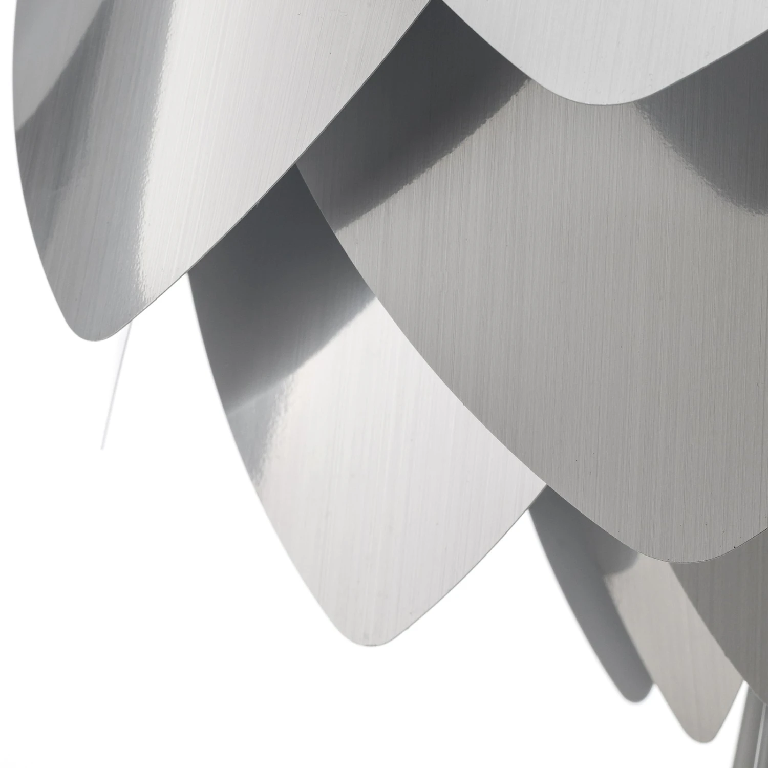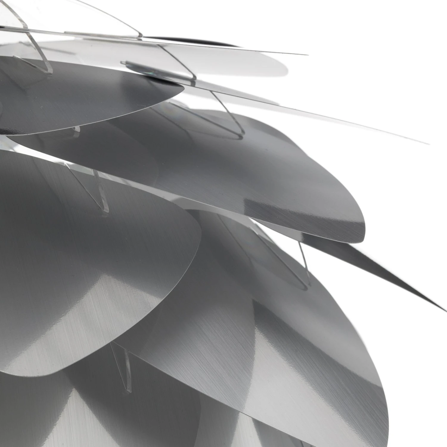 Exotisches Flair umschmeichelt die Stehlampe Silvia medium, deren Schirm aus dreieckigen Blättern aus unzerbrechlichem Kunststoff gefertigt wurde. Durch die überlappende Befestigung der Blätter entsteht der Eindruck, eine schöne Pflanze vor sich zu haben. Die Schirmkonstruktion erzeugt ein sehr stimmungsvolles, nach oben und unten sowie durch die Zwischenräume der Elemente strahlendes Licht.