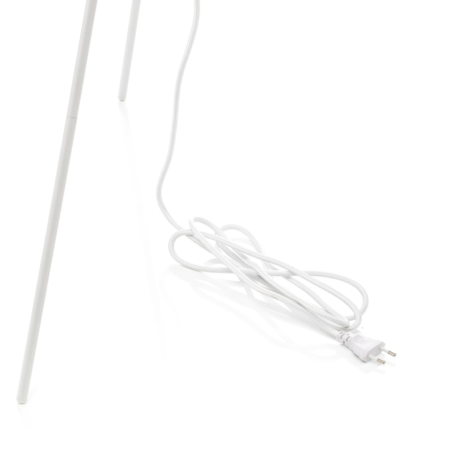 Unterhalb der Leuchtmittelfassung ist mittig das 300 cm lange Zuleitungskabel mit integriertem Schalter befestigt, das so zu einem wichtigen Element der optischen Gestaltung wird.
